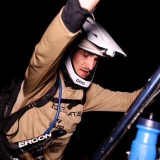 Er verlässt den Gletscher unter den Top 15. Der nächste Abschnitt ist extrem technisch. Ein Sturz, ein kleiner Fehler gar, und man verliert viele Plätze. Maël Féron fährt auf den Single Tracks eine defensive Strategie – er folgt der Line seiner Vorgänger, nimmt die Hände so oft es geht von den Ergon GDH Griffen, versucht sich zu entspannen, spart Energie, wo es nur geht. Auf der legendären Traverse setzt er sich auf seinen SM Enduro Sattel, atmet durch, bringt die Herzfrequenz runter. Als Kilian Bron mit vollem Speed an ihm vorbeizieht, spürt er „Ich fühle mich gut, hier ist was für mich drin!” Von nun an jagt er den Zweitplatzierten des Jahres 2021.