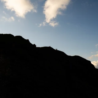 Then the first problems appear. Cramps in the legs and back. It's hot, but on the demanding descents, it's almost impossible to drink enough. By the end of the day, fatigue and exhaustion are becoming overwhelming. Jules is struggling with digestive issues. They push through a real low point before the climb to Mandéon, helped by their support team, which stays close and boosts their morale. Jules and Valentin fight their way to the top of Mandéon during the night, where they can finally get three hours of sleep.