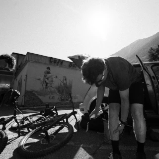 Jules Dreyer looks directly into the camera. His face is gaunt, his shoulders slumped. "Non, pas la joie là." – That's not fun anymore. Jules and his friend Valentin are pushing their bikes up the Pas de Lona in Switzerland. They’re aiming for a unique world record: riding from Chamonix at the foot of Mont Blanc to Zermatt on the Matterhorn. To succeed they need to cover 220 kilometers with 12,000 meters of punishing climbs in 48 hours.